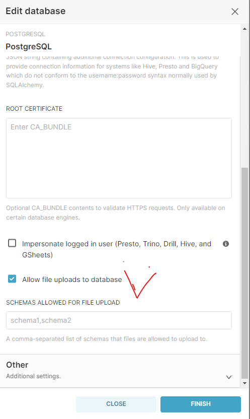 이제 이런 식으로 하면 db를 연결할 수 있고, csv를 업로드하려면 또 하나 해야 하는 작업이 있다.