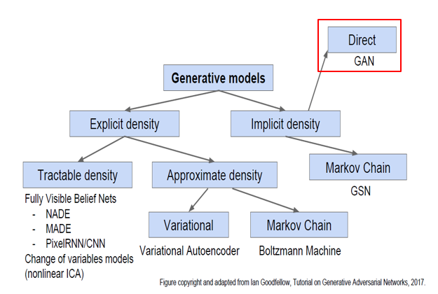 Explicit density 는 P_model(x)를 확실히 정의 할 수 있고 계산할 수 있는(tractable) 이든지 approximate처럼 근사하는 VAE 같은 것으로 나눌 수 있다.