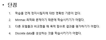 그렇다면 이 GAN는 단점은 뭐고 학습 시 문제점이 많다는데 뭐가 문제인 걸까?