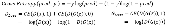 지금 입장에서 보면 알 듯이 가짜냐 진짜냐 , 0, 1 binary case로 정의를 할 수 있기 때문에 Cross entropy처럼 구현이 가능합니다!
