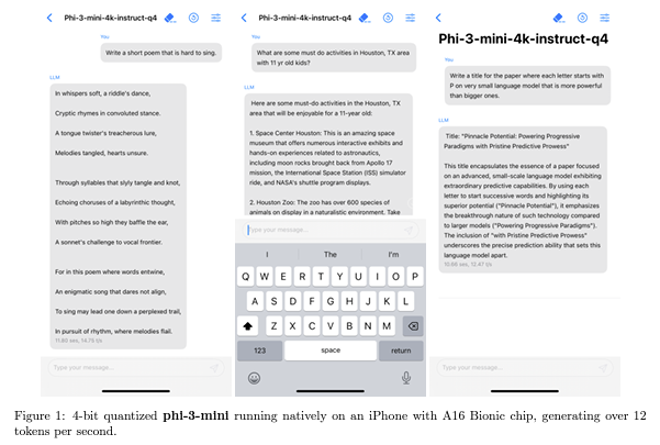 모델은 4-비트로 양자화되어 메모리 사용량을 약 1.8GB로 줄이면서도, iPhone 14와 같은 현대적인 스마트폰에서 네이티브로 실행될 수 있습니다. 이로 인해 초당 12개 이상의 토큰을 처리할 수 있습니다.