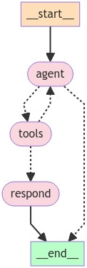 graph_builder.add_conditional_edges("tools", route, {"respond":"respond", "agent":"agent"})