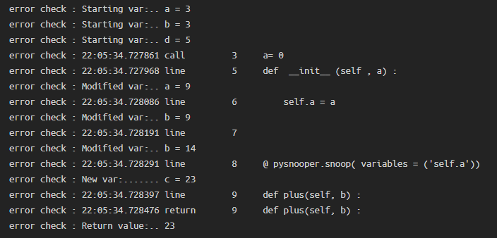 @ pysnooper.snoop (prefix = 'error check : ' )