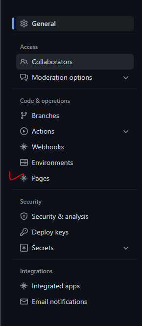 한 프로젝트 내에서 [Settings]를 들어가서, [Pages]를 들어간다.